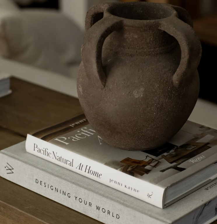 13" VINTAGE CLAY TERRACOTTA URN W/ HANDLES